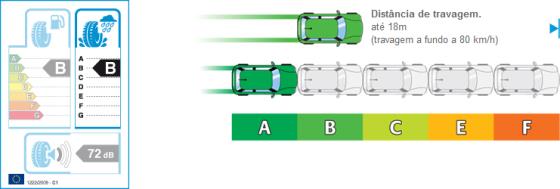 La etiqueta representa una escala de 7 niveles en los neumáticos con una «A» ofrecen los más altos niveles de adherencia en superficie mojada y «G» representa la más baja.