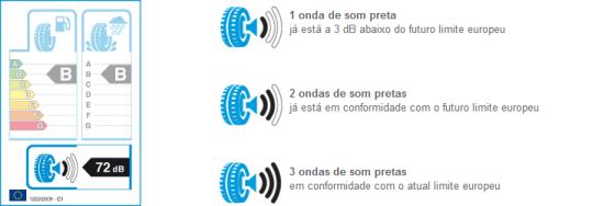 Los niveles de ruido al aire libre están divididos en 3 categorías medidos en decibelios (dB) en comparación con los nuevos niveles de ruido al aire libre para los neumáticos para ser introducidas a Europa hasta 2016.